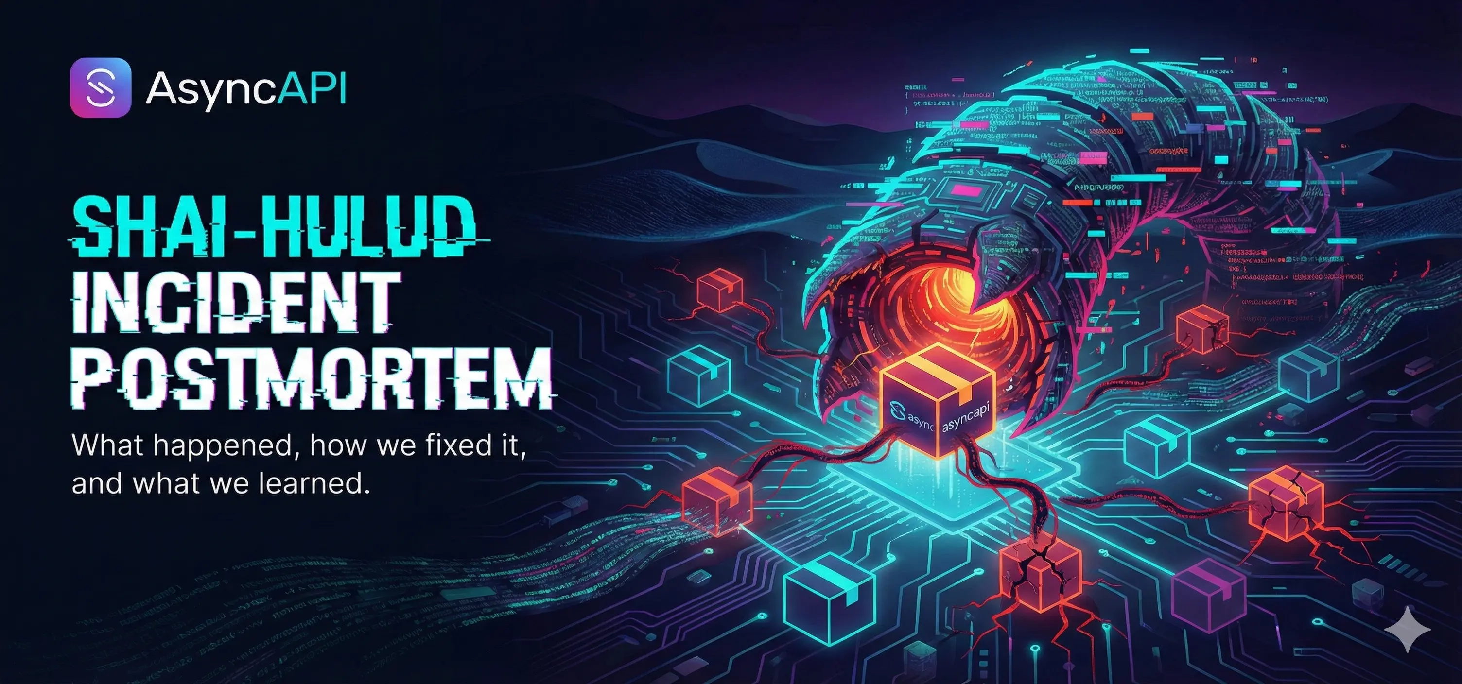 On the morning of November 24, 2025, we were alerted by Charlie Eriksen from Aikido about suspicious activity involving several AsyncAPI-related packages on the npm registry. Upon investigation, we discovered that unauthorized versions of our packages had been published, containing malicious code designed to exfiltrate sensitive information from users' environments. This was further verified by Charlie, who identified it as a Shai-Hulud worm attack.